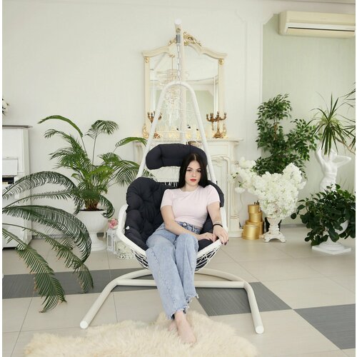 металлПодвесное кресло-кокон STULER Smile с белой стойкой и серой круглой подушкой - стильное и удобное решение для вашего дома или сада. Изготовленное из прочного и стильного ротанга, оно станет отличным дополнением к вашему интерьеру.