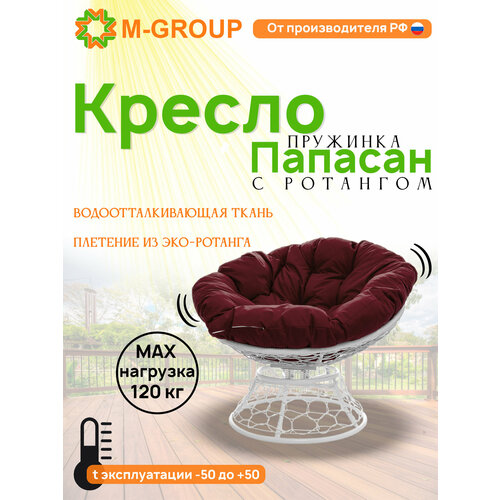 Кресло M-group папасан без ротанга белое бордовая подушка