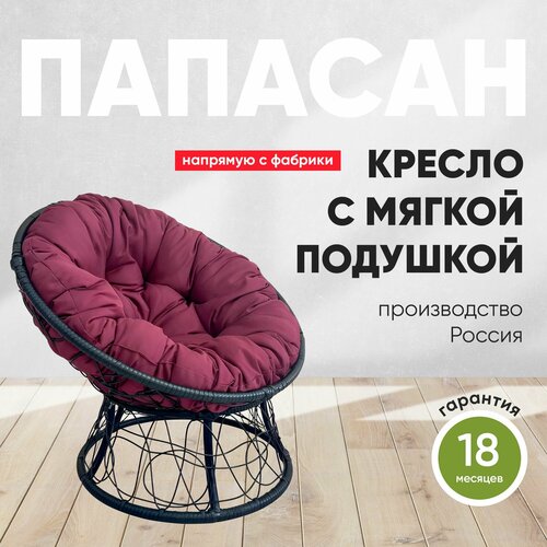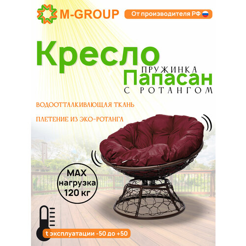 Кресло папасан пружинка с ротангом коричневое, бордовая