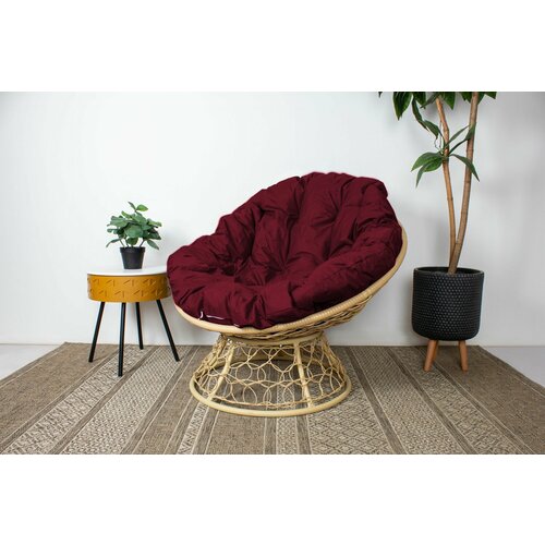Кресло папасан с ротангом бежевое, бордовая подушка, шт
