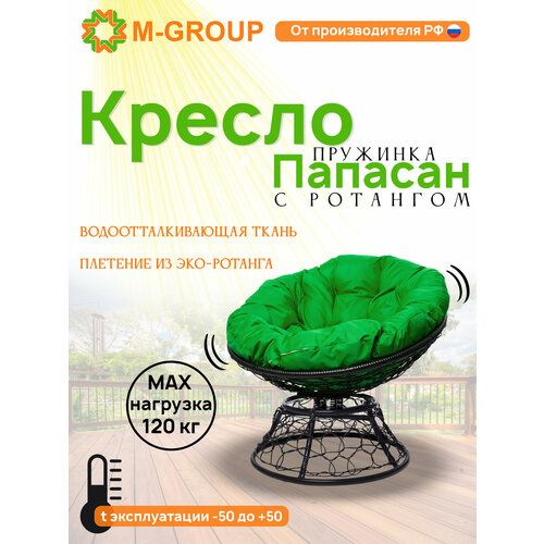 Кресло папасан пружинка с ротангом чёрное, зелёная