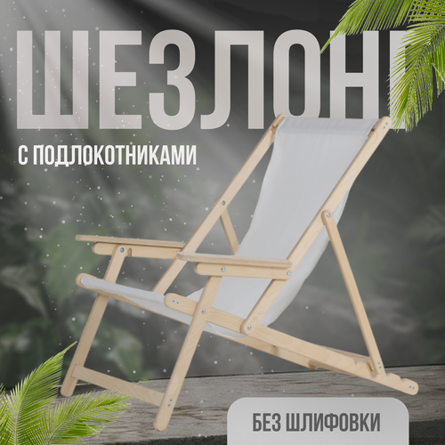 Кресло-шезлонг "Элби" с подлокотниками без шлифовки с белой тканью для дома и для дачи