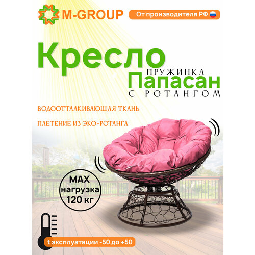 Кресло папасан пружинка с ротангом коричневое, розовая