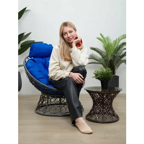 Кресло садовое M-Group папасан пружинка мини ротанг чёрное, серая подушка
