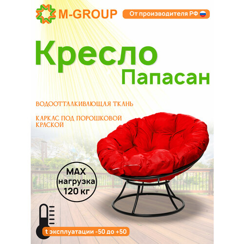 Кресло садовое M-Group папасан пружинка ротанг чёрное, розовая подушка