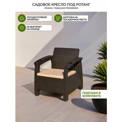 Кресло Альтернатива Ротанг Плюс М8839 (с бежевой подушкой ) , мокко/темно-коричневый