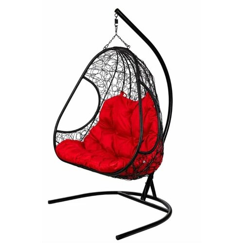 Кресло подвесное Bigarden "Easy", серое, со стойкой, красная подушка (чехол в подарок)