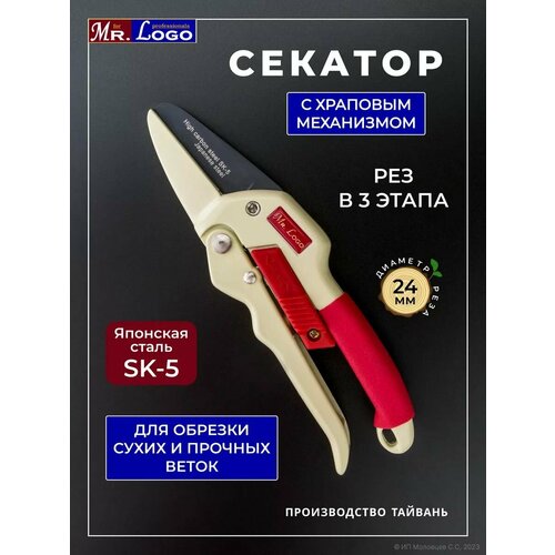 Секатор "Mr.Logo" с храповым механизмом, 205 мм