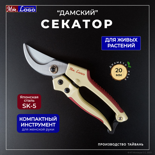 Секатор садовый плоскостной Mr.Logo "Дамский" арт. 1610 Диаметр реза - 20 мм