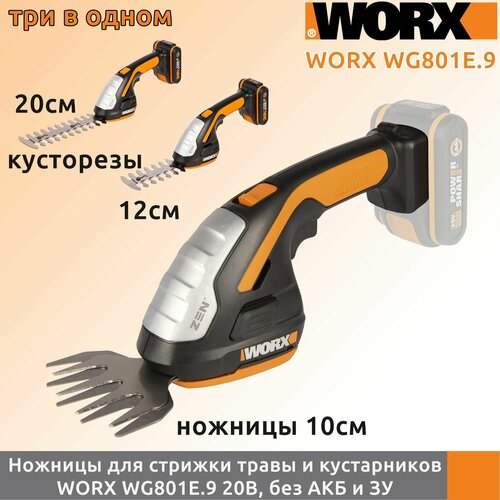 Аккумуляторные ножницы для стрижки травы и кустарников Worx WG801E.9, без АКБ и ЗУ