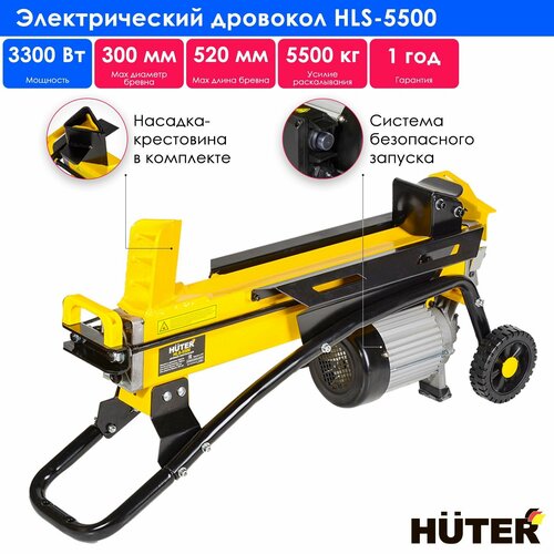 Электрический гидравлический дровокол Huter HLS-5500, 5.5 т желтый/черный