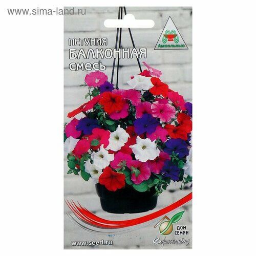 Семена петунии "Балконная" Дом семян, 210шт, ампельная, светолюбивая, засухоустойчивая