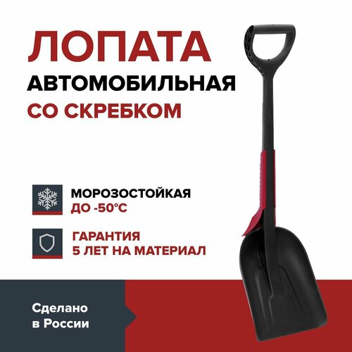 Лопата автомоб. снег. "Fachmann" 460*370мм с план, темн-син, В сборе с алюмин. черенк(d-32) и D-руч