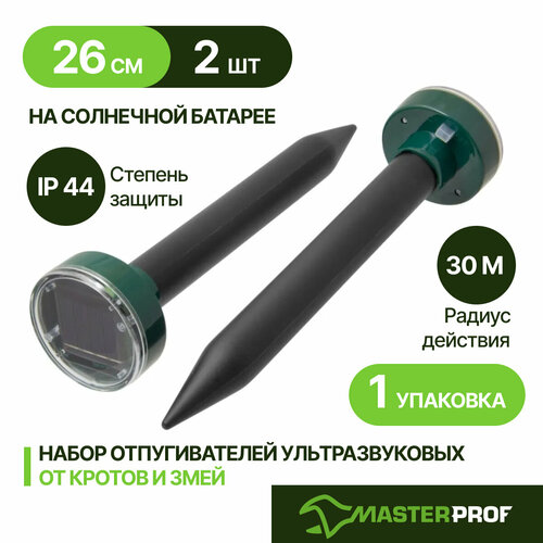 Отпугиватель ультразвуковой импульсный, на солнечной батарее от кротов, грызунов и змей, 2 шт, 26 см