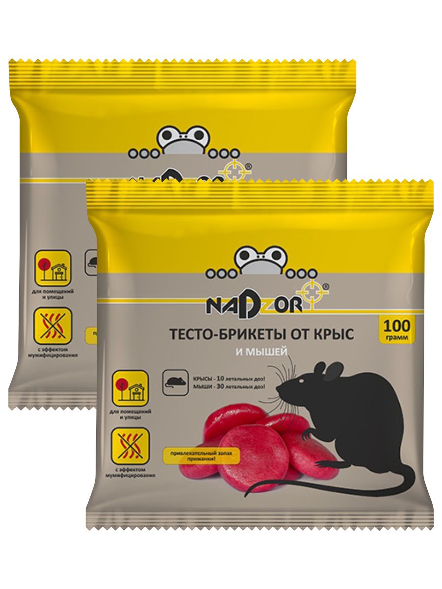 Комплект Тесто-брикет от мышей и крыс Nadzor 100 гр. х 2 шт.