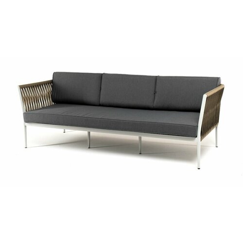 Диван плетеный из роупа 4sis "Канны" (веревки) трехместный Каркас алюминий белый шагрень, роуп светло-серый круглый, ткань neo ash