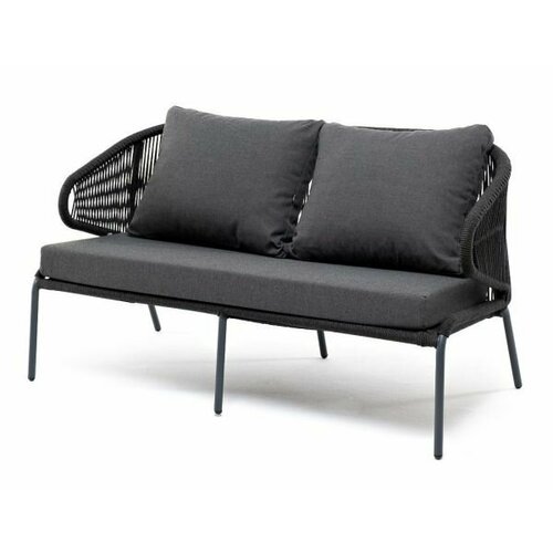 Диван 2-местный плетеный из роупа 4sis Сан Ремо Каркас алюминий темно-серый, роуп серый, ткань серая