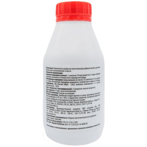 Активирует и ускоряет процессы фотосинтеза, увеличивает рост и плодообразование культур Состав (г/л): Магний (Mg0) – 120,0 г/л ком...