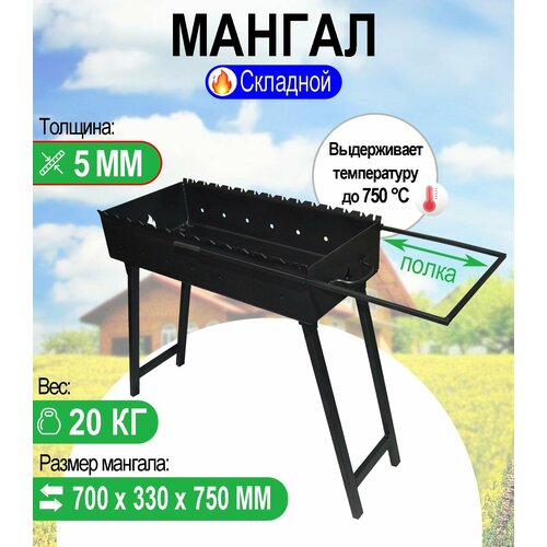 Мангал складной МС 700, металл 5 мм, с выдвижной полкой.
