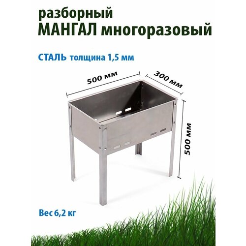 Мангал разборный средний 500х300х500 мм / сборный многоразовый / сталь 1,5 мм / складной / для дачи и пикника / гриль