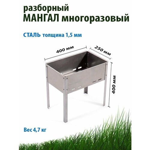 Мангал разборный малый 400х250х400 мм / многоразовый / сталь 1,5 мм / складной / для дачи и пикника / гриль