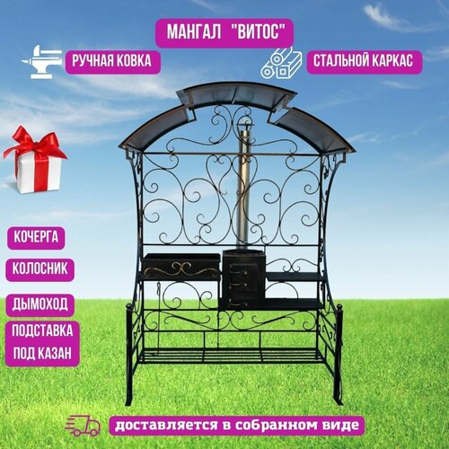 Мангал "Витос" с крышей, жаровней и печью под казан c дымоходом, для шашлыка и плова на даче, кованый уличный навес для отдыха на природе из стали 3 мм, стационарный, высокий, большой, каркасный~PDXМангал беседка "Флоренция" с крышей для дачи и отдыха на природе, кованый уличный навес из стали 3 мм, с жаровней для шашлыка, печью под казан с дымоходом, стационарный, высокий, мангальная зона~Саженец роза плетистая Шнивальцер