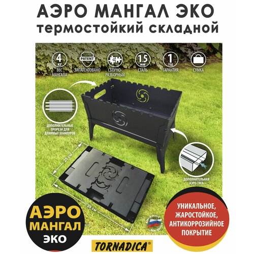 Мангал складной мини из термической стали 1.5мм, с аэротуннелем, 39х25х36см, с сумкой