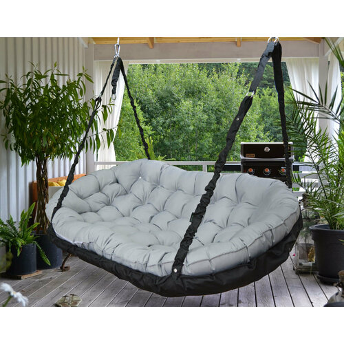 Подвесной диван качели для сада 185х100см черный - светло серый