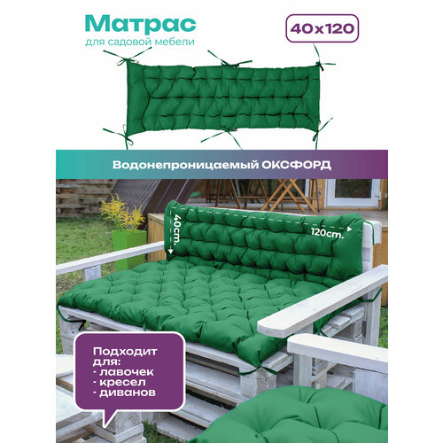 Подушка-матрас на лавку, для паллет, на скамью, для садовой мебели Bio-Line 40х120см, водонепроницаемая зел