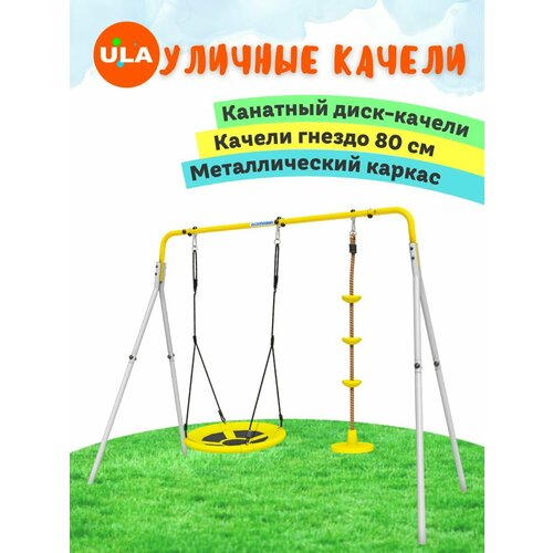 Уличные качели детские ROMANA с диск качелями и плетеными