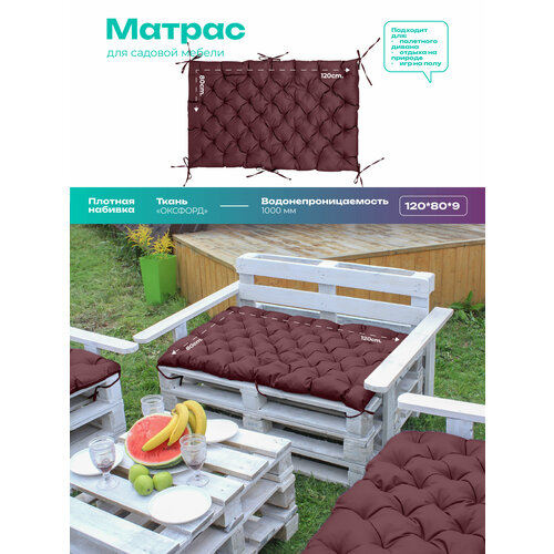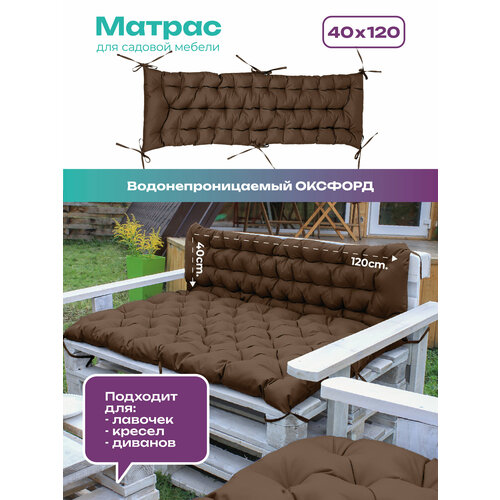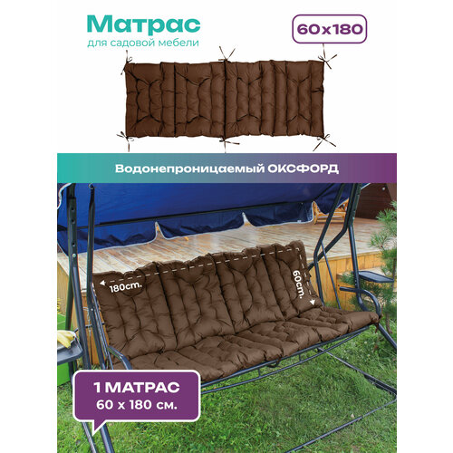 Матрас для садовых качелей Bio-Line, матрас для шезлонга, на кушетку, 60х180 см, влагостойкий, на завязках шоколад