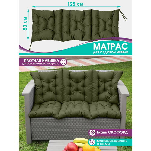 Матрас для садовой мебели, качелей 50х125 см с завязками, влагостойкий, хаки