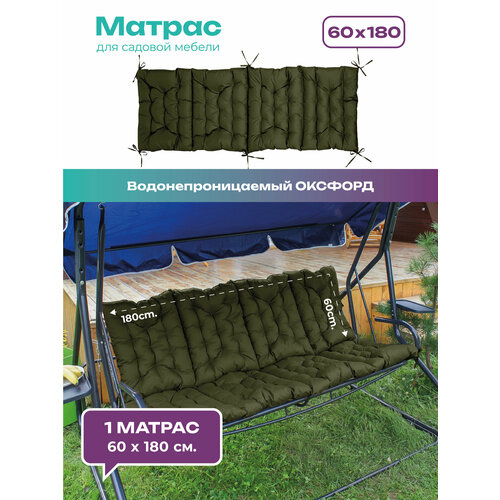 Матрас для садовых качелей Bio-Line, матрас для шезлонга, на кушетку, на кушетку, 60х180 см, влагостойкий, на завязках, влагостойкий олива
