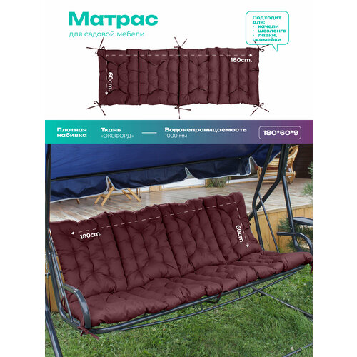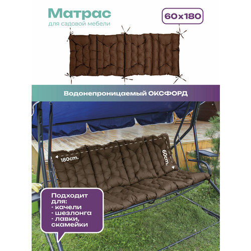 Матрас для качелей Bio-Line, подушка матрас на скамейку, шезлонг, кушетку, 60х180 см, влагостойкий шоколад