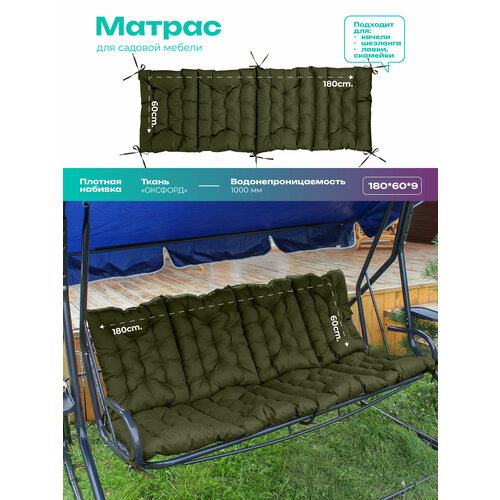 Матрас для садовых качелей Bio-Line, матрас для шезлонга, на кушетку, 60х180 см, влагостойкий, на завязках, влагостойкий олива