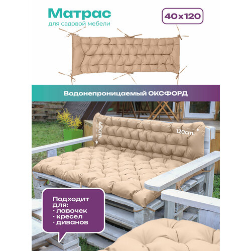 Подушка-матрас на лавку, для паллет, на скамью, для садовой мебели Bio-Line 40х120см, водонепроницаемая беж