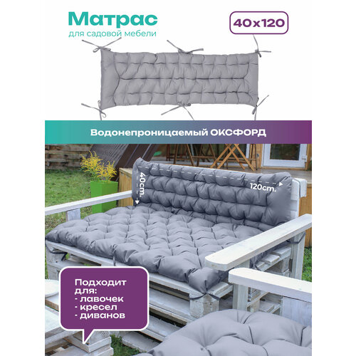 Матрас для садовой мебели, качелей 50х125 см с завязками, влагостойкий, серый