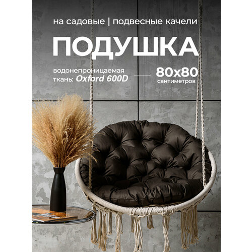 Подушка для подвесного кресла, круглая 80см, на качель "гнездо", Bio-Line, оксфорд 600d, серая