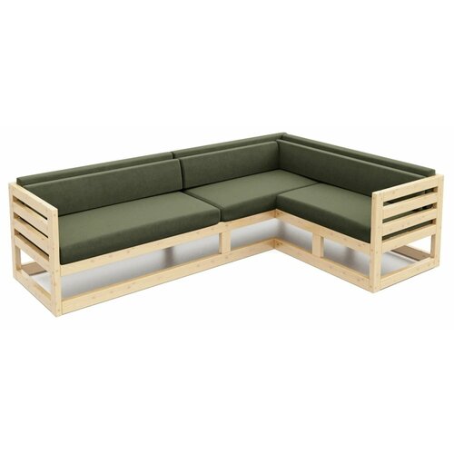 Кресло-шезлонг "Элби" с подлокотниками без шлифовки с зеленой тканью для дома и для дачи, комплект 2 шт