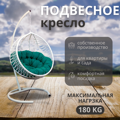 Подвесное кресло бабочки, 100*78*110, белое , бирюзовая подушка