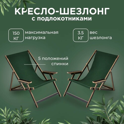 Кресло-шезлонг "Элби" с подлокотниками ламинированный с зеленой тканью для дома и для дачи комплект 2 шт