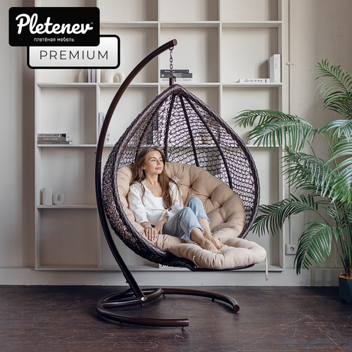 Подвесное кресло премиум "Капля Люкс" с подушкой и стойкой