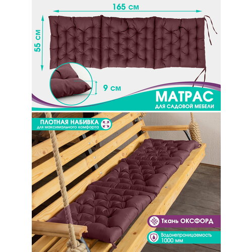 Подушка - матрас для садовых качелей, на кушетку, для шезлонга, для подвесного кресла, на скамейку 55x165см, бордо
