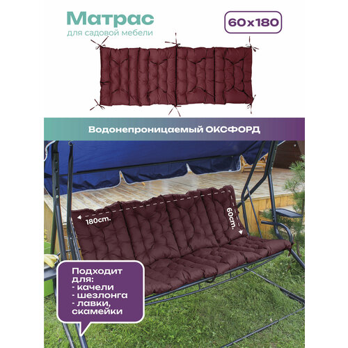 Матрас для садовых качелей Bio-Line, матрас для шезлонга, на кушетку, 60х180 см, влагостойкий, на завязкахбордо