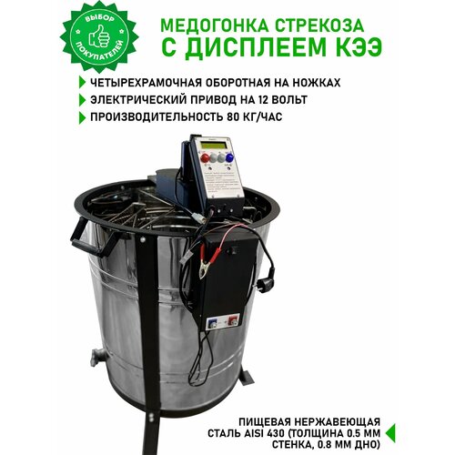 Медогонка электрическая, 4-х рамочная, оборотная, на ножках, с дисплеем, КЭЭ, Стрекоза, Планета Садовод, Серый