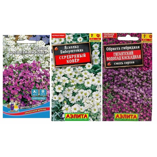 Семена цветов "Чудесный ковёр" (Обриета Гигантский водопад каскадная, Ясколка Серебряный ковер, Арабис Волшебный ковер)