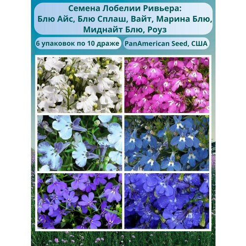 Лобелия эринус Ривьера 6 упаковок по 10 драже: Блю Айс, Блю Сплаш, Лилак, Марина Блю, Миднайт Блю, Роуз