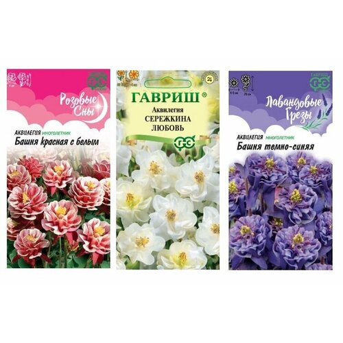 Набор семян аквилегии "Садовая принцесса" (Башня красная с белым, Сережкина любовь, Башня Темно-синяя)
