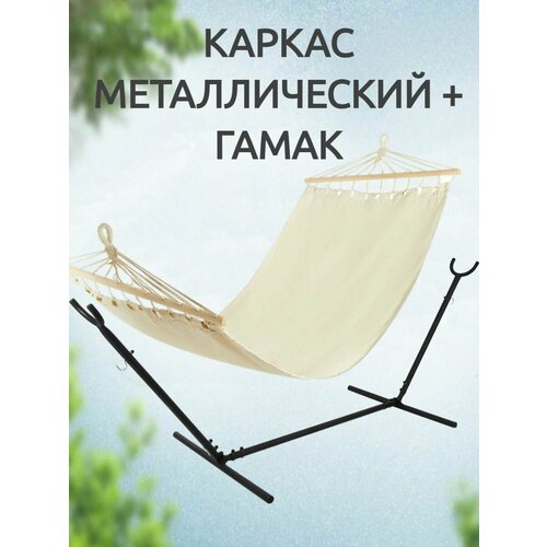 Набор из каркаса и гамака с деревянными планками (нагрузка до 120 кг), отличное решение для отдыха, быстрая и легкая сборка