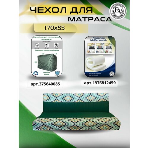 Чехол на матрас для садовых качелей Everena 170*55*8 green ornament